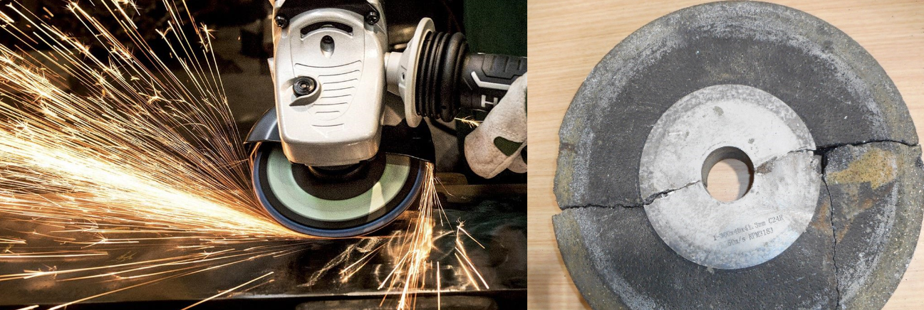 Consider other and protect you eyes from flying particles. Check spindle speed, disc speed, for damage, the reinforcement, and it is the right disc for the job.