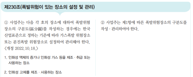 ▶ 제230조 [폭발위험이 있는 장소의 설정 및 관리]