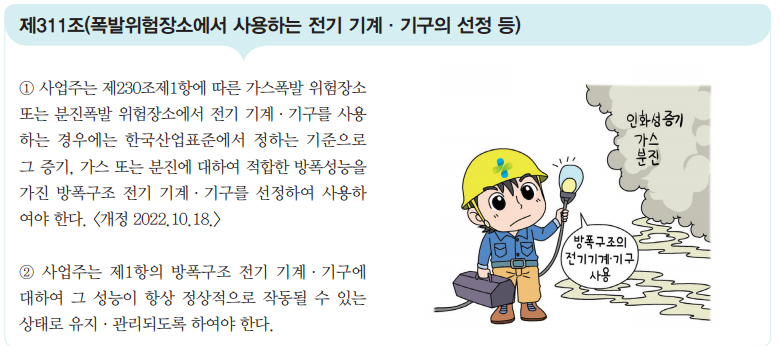 ▶ 제311조 [폭발위험장소에서 사용하는 전기기계,기구의 선등 등]