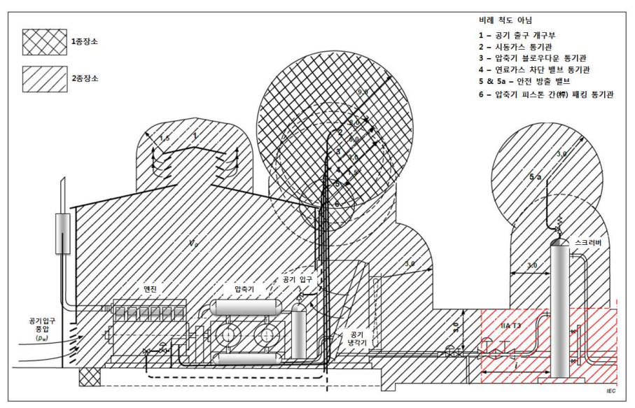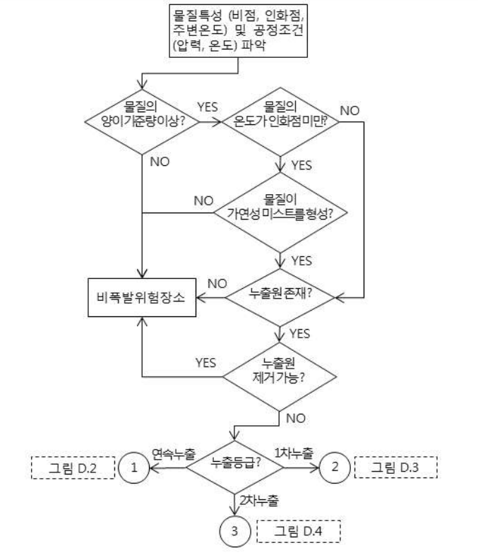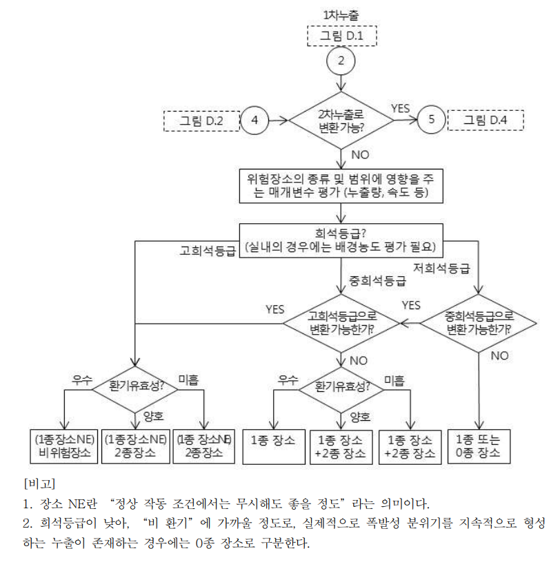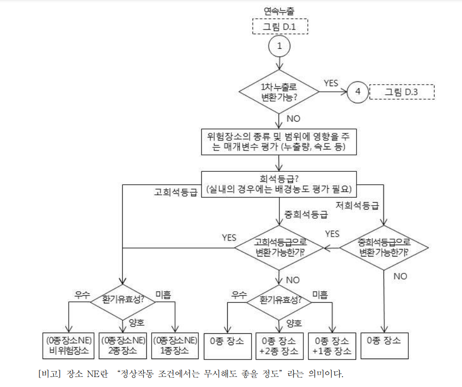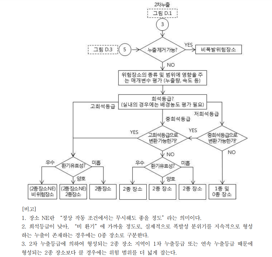 - 위험장소 구분의 경계에 대한 정확한 도표를 구하기 위해서는 점 누출원에 대한 예시 참조 등 자세한 평가 필요