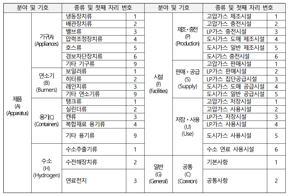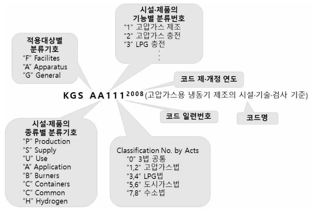 Ex) KGS GC101 2022 : Korea Gas Safety, General, Common, 고압가스제조, 3법 공통, 일련번호1, 2022년 작성