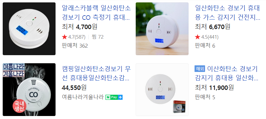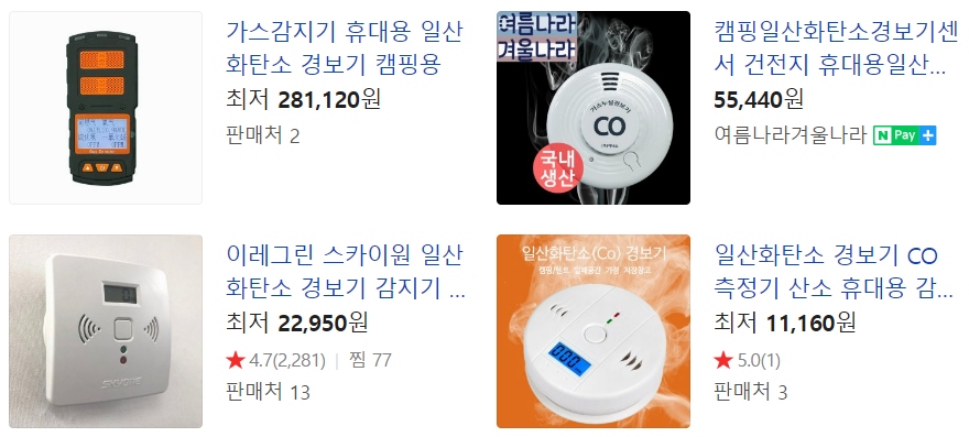 - 실내 일산화탄소 감지기 휴대 또는 설치
