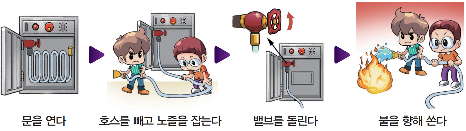 - 소화기를 이용한 초기소화 실패시 수동조작에 의해 소화활동에 활용
