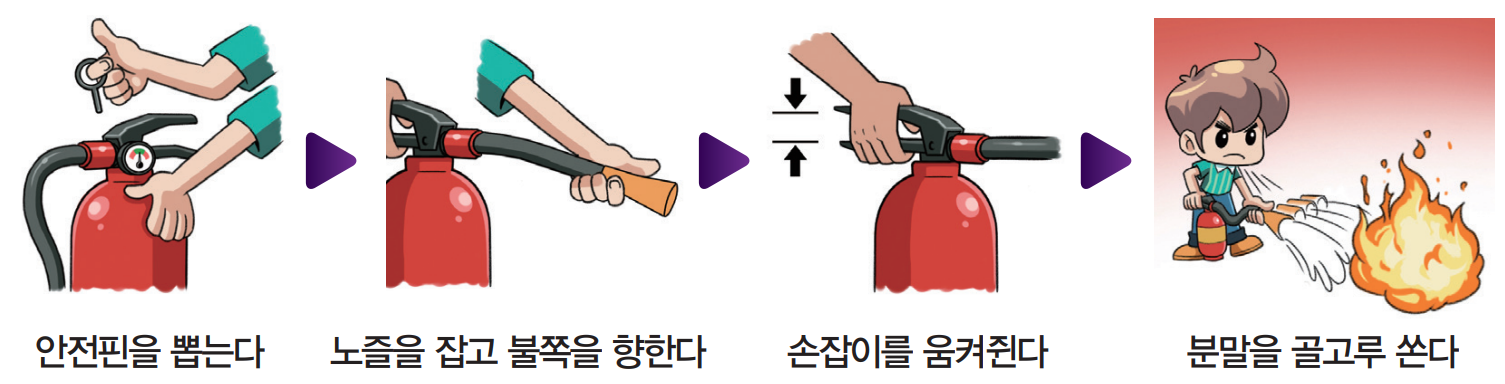 - 분말 소화약제 또는 소화용 가스를 이용한 일반 소화기