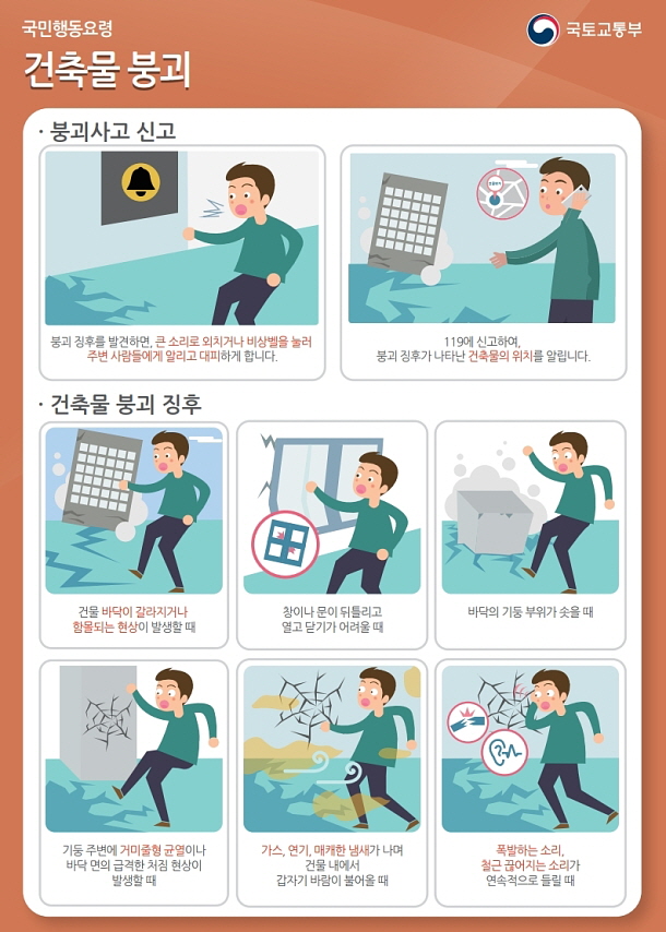 사고를 예방하려면 붕괴 징후를 최대한 빨리 포착하는 것이 중요합니다. 또한 사전에 위험 징후를 포착했다면 즉시 구조물 내부 또는 주변에 있는 사람들을 대피시키고 구조물의 상태를 정확하게 진단해야 할 것 입니다.