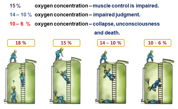 산소가 부족할 때에는 재해자가 위험을 인지하기 전에, 사고로 이어진다고 합니다.