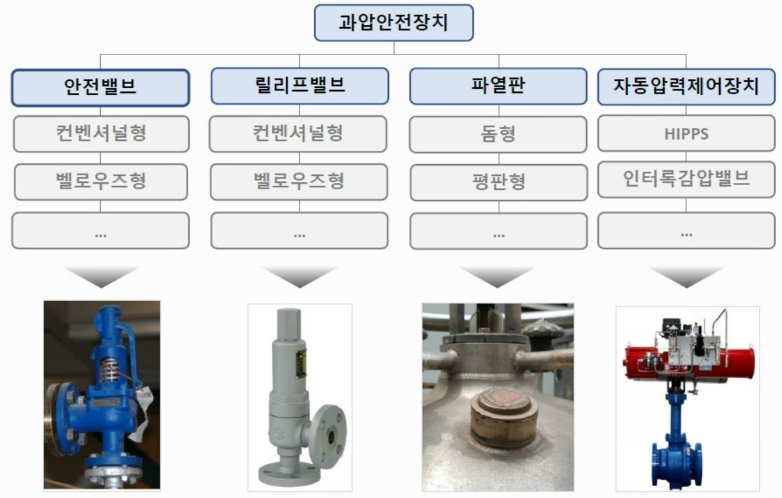 플랜트 배관설비에서 과도한 압력의 상승으로 인한 사고를 방지하기 위해 다양한 형태의 과압안전장치를 의미한다.