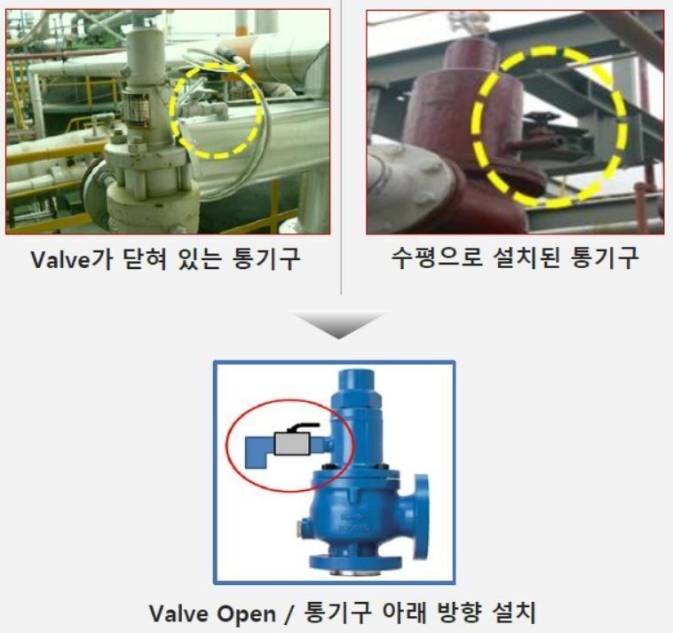 - 차단밸브가 설치된 경우 개방 후 조작하지 못하도록 잠금 및 표지를 부착하여 반드시 1개 이상의 PSV가 작동하도록 관리해야 합니다.