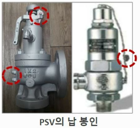 A. • 안전밸브는 설정압력의 임의 조작을 방지하기 위하여 납으로 봉인하여 관리합니다.