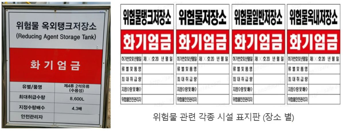 이에 따라 각 법령에서 요구하는 화학물질정보 표지판, 게시물의 종류와 기준이 각기 다릅니다.