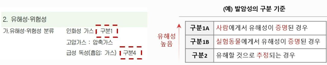 구분은 유해성의 정도를 나타내며, 숫자가 낮을수록 유해위험성이 높은 물질입니다.
