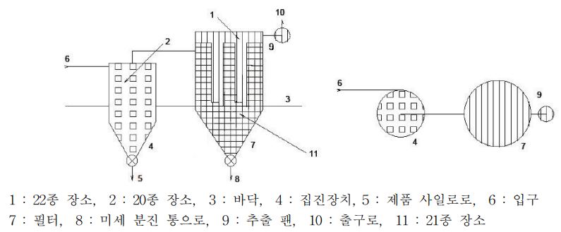 (2) 21종 장소 : 적은 양의 분진이 정상 작동 중에 사이클론에 의하여 포집되지 않는 경우에만 필터의 입구 측(Dirty side)은 21종 장소이다. 그렇지 않다면, 필터의 입구 측은 20종 장소이다.