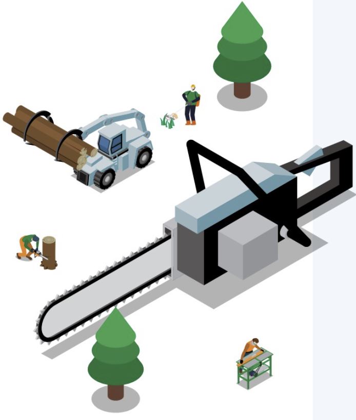 '기계톱'은 톱날을 원동기로 회전시켜 나무, 목재 등을 절단할 때 사용하는 것으로 원동기의 종류에 따라 엔진식, 전동식 등이 있습니다. 기계톱 작업 시 부주위, 넘어짐, 넝쿨 등에 위해 톱날에 베일 위험이 있으며, 작업 중 미끄러져 넘어지면서 기계톱에 닿아서 부상을 입거나 체인이 끊어져 튀어 올라 맞거나 베이는 등의 사고가 발생할 수 있습니다. 기계톱 끝부분이 단단한 물체와 접촉해 톱 체인 반발력에 위해 튀어 올라 부상 등을 당할 수 있습니다.