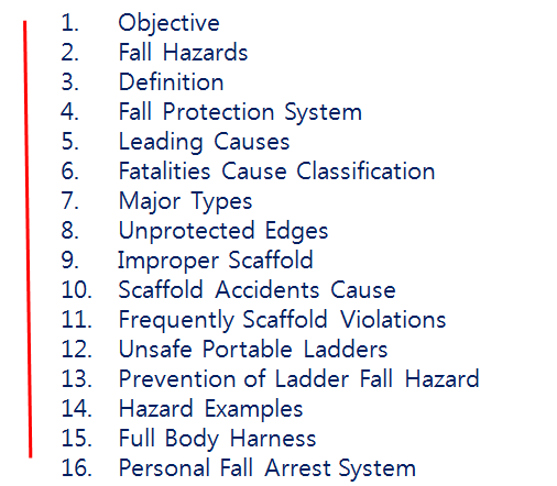 아래 간단히 정리한 추락사고 예방교육 자료 입니다.