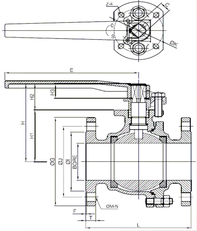 - 몸통내부의 중심 측과 유로에 있는 중심부에 관통 구멍이 같은 볼로 조립되어 축을 회전하므로 볼이 회전되어 밸브가 개폐하는 구조