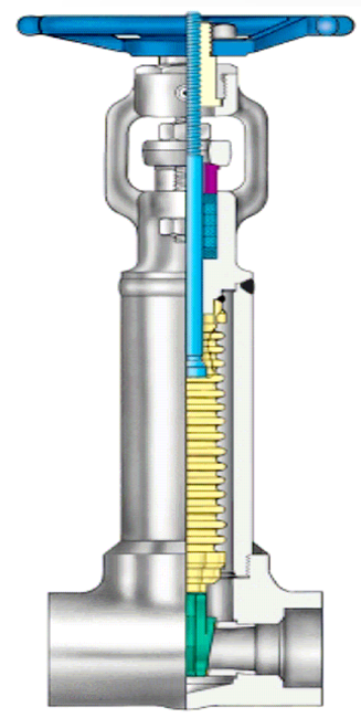 - Stem의 운동부에 기밀 유지를 위해 장착된 Packing이 고온, 고압 및 장시간 사용 등으로 인하여 Packing이 고형와, 압축 부식 및 마모되어 패킹 본래의 기능을 상실함으로써 발생할 수 있는 누설을 Flexible Hose(Bellows)을 이용하여 차단하는 구조로 설계된 밸브