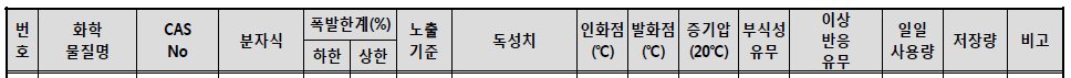 ▣ 폭발한계 : 대기 중에서 폭발 상,하한치를 기입