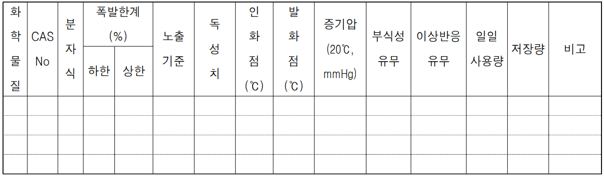 [ 유해·위험물질목록, 별지 제13호 서식]