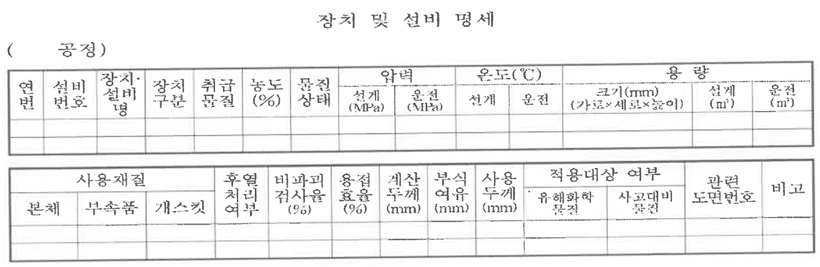 ▣ 장치 및 설비 명세 [별지 제15호 서식]