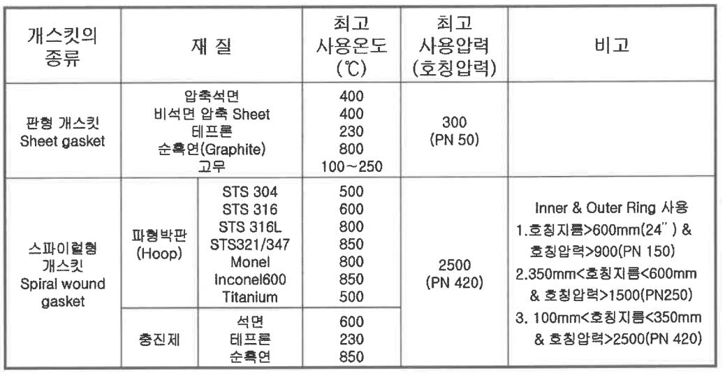 ▣ 개스킷의 선정지침