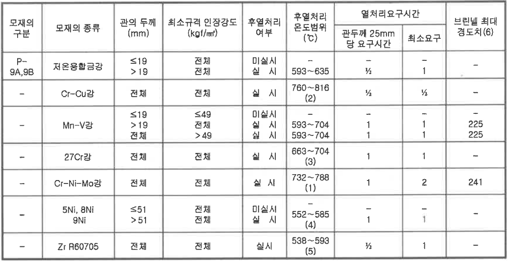 - 동 코드에 규정된 용접 후 열처리가 요구되는 배관