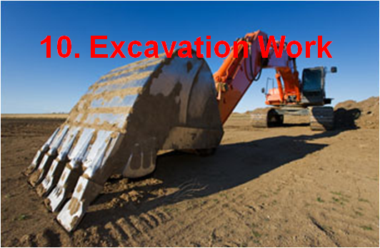 | Falls of Equipment/ Machinery and/or Plant into Excavation | 1. Can occur if equipment/machinery and/or plant are located too close to the excavation or if operational plant (such as dumper diggers, etc.) drive or reverse into the excavation. |