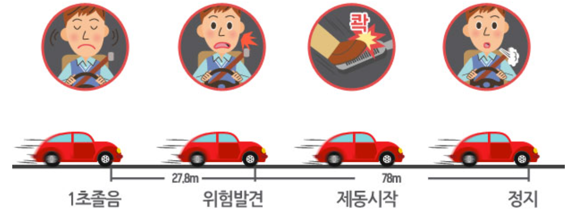 100km/h 속도로 운전할 때 단 1초만 졸더라도