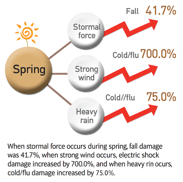 ● 일일 기온차가 크게 나타나는 환절기에는 급작스러운 기온 저하시 혈압이 상승하게 되며 과도한 육체적 노동은 뇌졸중, 심근경색 등을 가져올 수 있으므로 주의해야 함