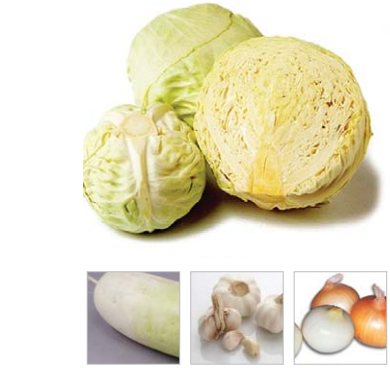 양배추 단백질, 무기질, 비타민이 풍부하며 위장장애를 치료하는데 뛰어난 효과가 있다. 뇌세포의 기능을 촉진시켜주는 라이신이 함유되어 있어 성장기 어린이에게 좋은 식품이다.